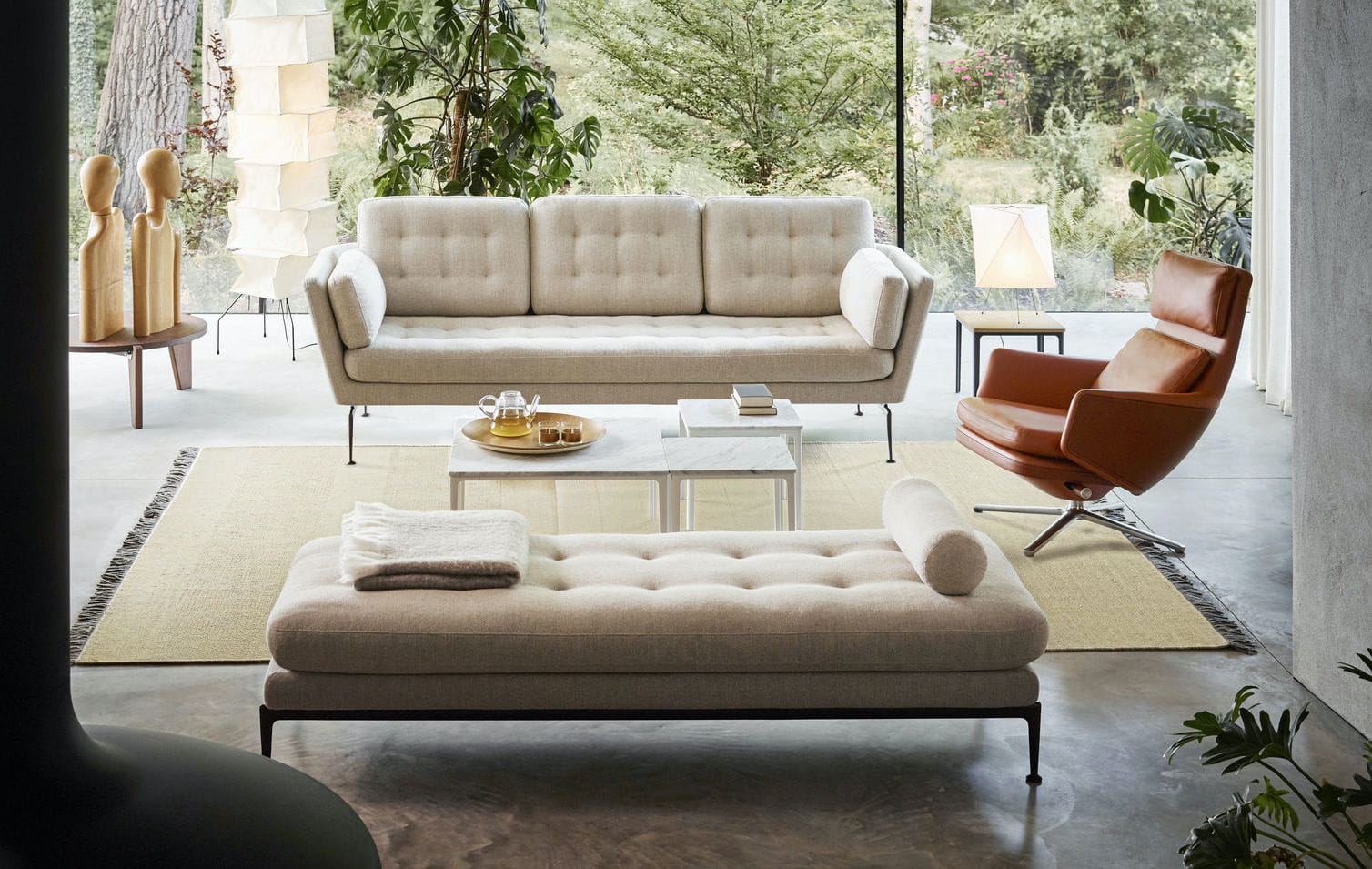 Charakteryzująca się elegancką estetyką technologiczną rodzina sof Suita Antonio Citterio składa się z wielu różnych elementów. Można je dowolnie łączyć lub wykorzystywać jako niezależne elementy.