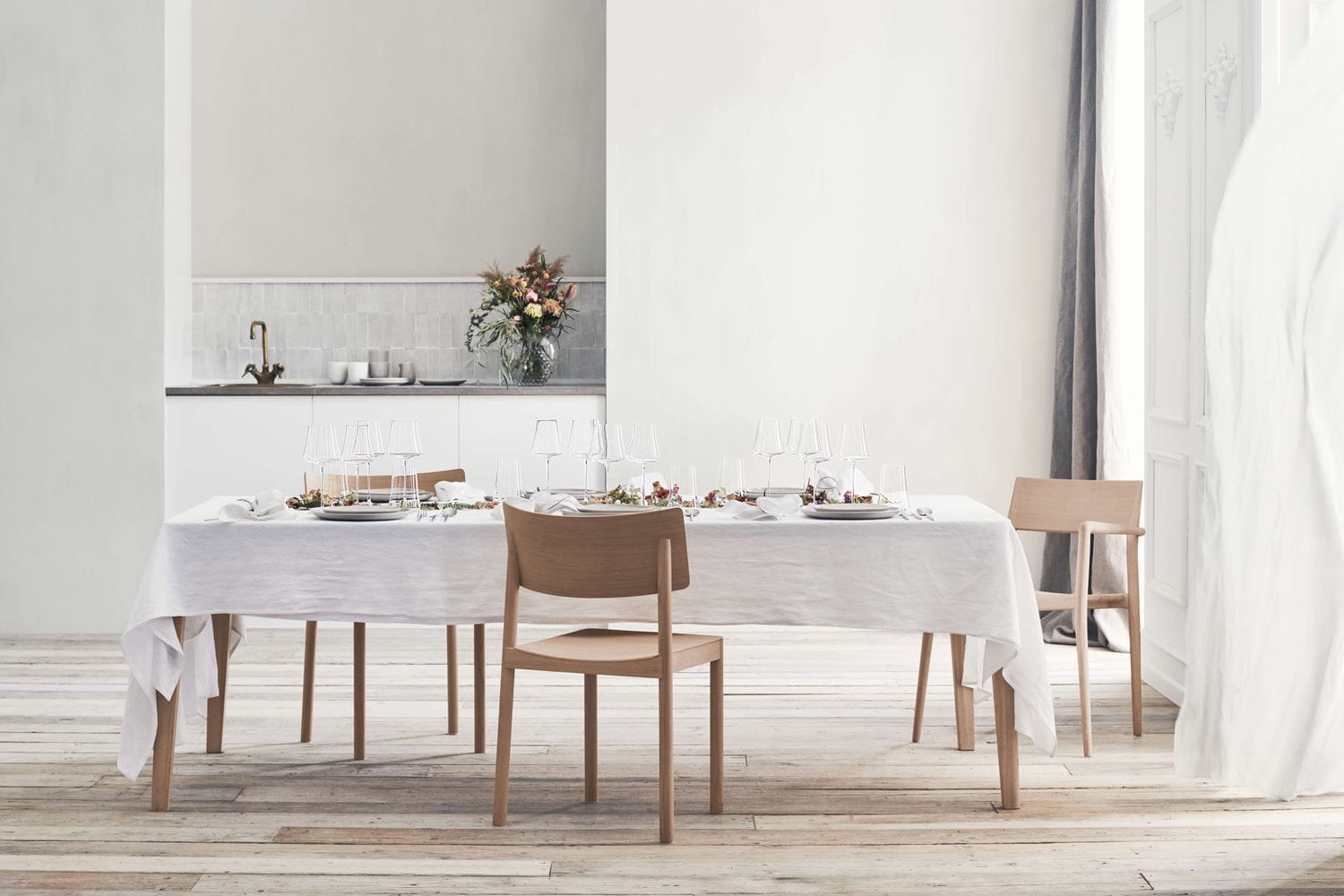 Projektant Michael H. Nielsen zaprojektował Graceful w oparciu o ideę „mniej znaczy więcej”. Można to wyraźnie zobaczyć i poczuć. Poziom szczegółowości jest ograniczony do minimum, aby stół mówił własnym, odrębnym językiem. Blat ma nieprzerwaną powierzchnię, aby podkreślić czysty wygląd, ale pod powierzchnią skrywa się wszechstronna wiedza techniczna, co jest niezbędne, gdy tak rygorystyczny stół jadalny ma z powodzeniem funkcjonować w praktyce. Graceful jest wykonany z litego dębu z certyfikatem FSC i produkowany w zielonej fabryce, w której wszystko jest poddawane recyklingowi lub ponownie wykorzystywane.