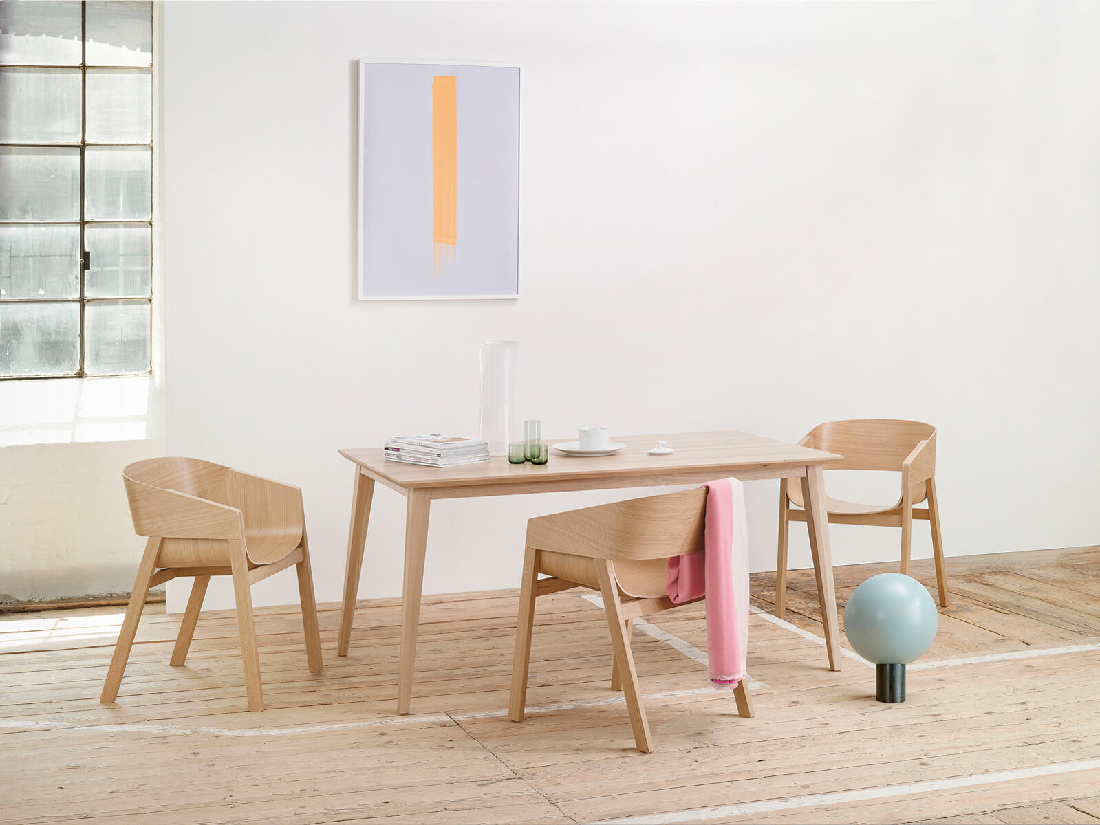Stół, będący pod wpływem skandynawskiego wzornictwa, łączy lekkość, nacisk na kształt i szczegóły oraz funkcjonalność. Do dyspozycji jest również rozkładany wariant z przedłużonym o 60 cm blatem. Stół jest dostępny w trzech rodzajach litego drewna – dąb, buk i orzech amerykański.