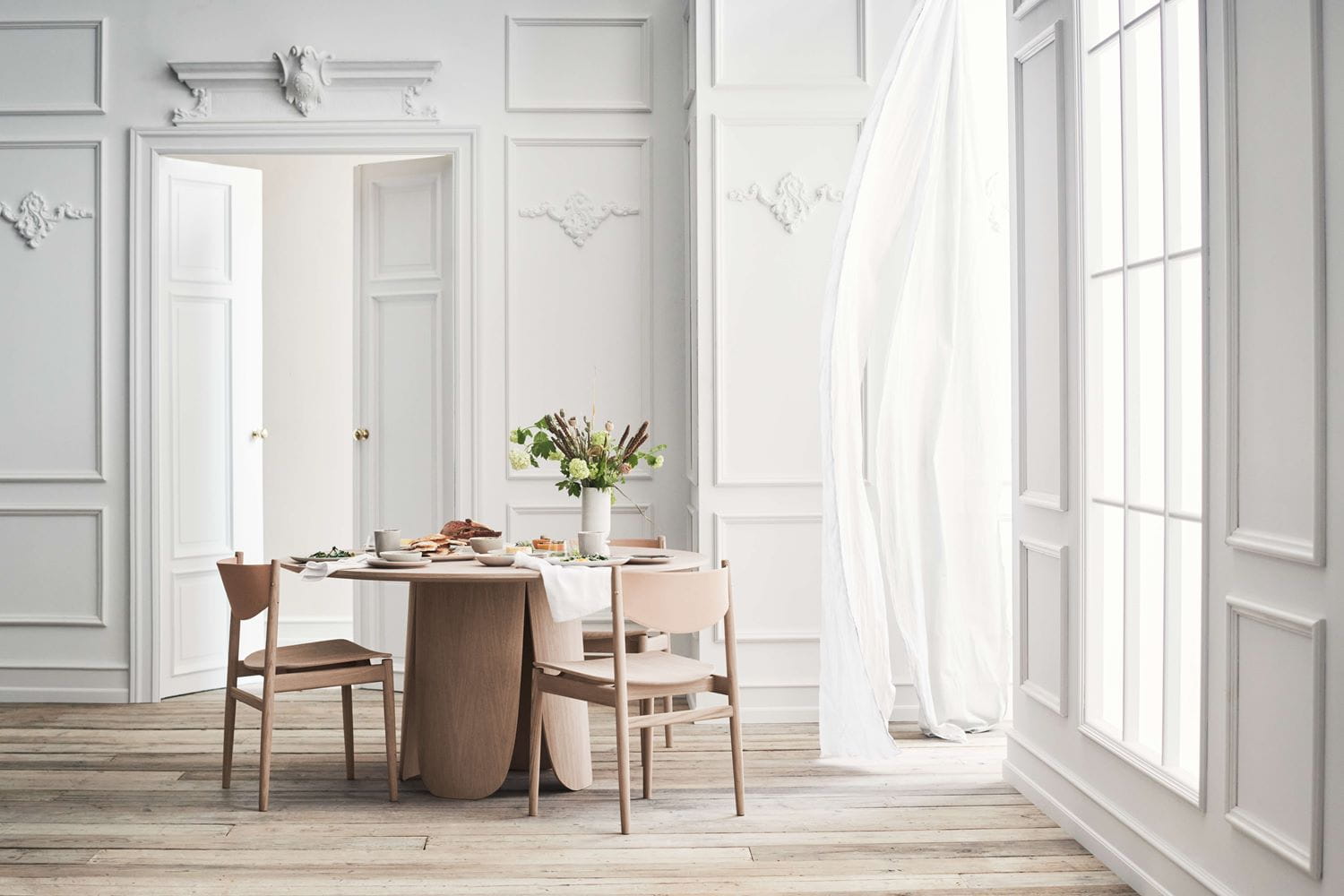 Dąb lakierowany na biało.
