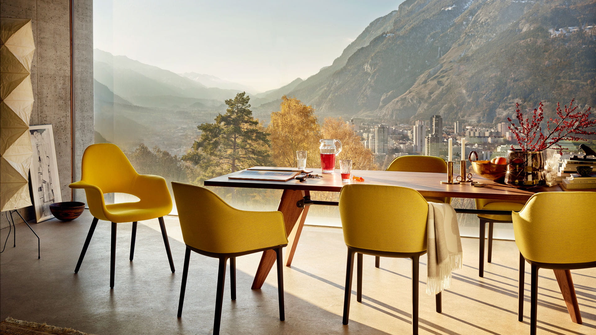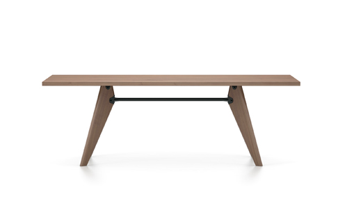 Jean Prouvé opracował Table Solvay podczas drugiej wojny światowej i ze względu na ówczesny niedobór metalu zaprojektował elegancki mebel z drewnianymi nogami. Elementy z litego drewna do wyboru z naturalnego dębu, dębu opalanego ciemnego lub orzecha amerykańskiego nadają stołowi lekkości i wyrafinowania.
