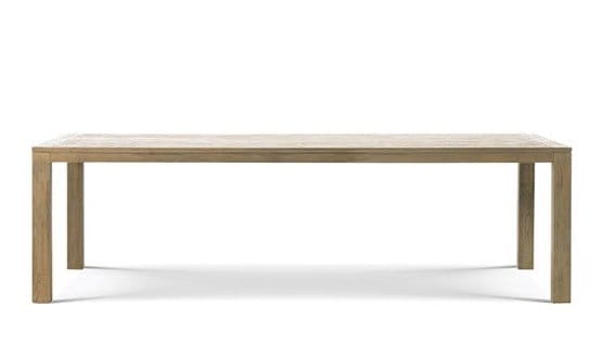 Stół z drewna tekowego naturalnego lub drewna tekowego trawionego.