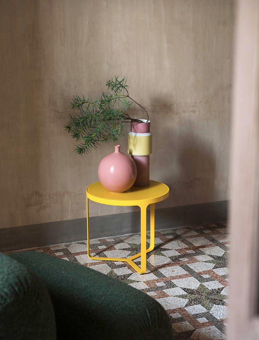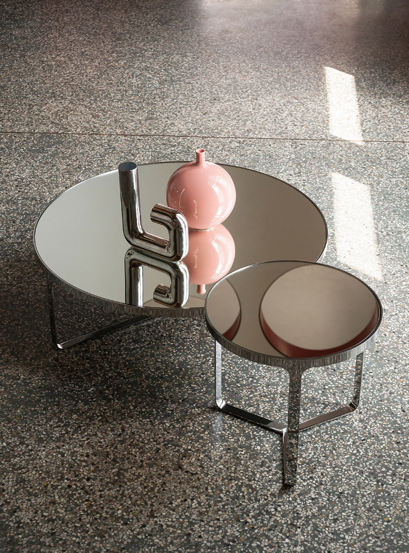 Minimalizm i elegancja to kluczowe cechy stolików kawowych Cage, z metalową podstawą, która jest jednocześnie podporą i ramą dla szlachetnego marmurowego blatu. Stoliki Cage mogą być okrągłe lub kwadratowe, wysokie lub niskie i towarzyszą i uzupełniają wszystkie sofy i fotele z kolekcji Tacchini.