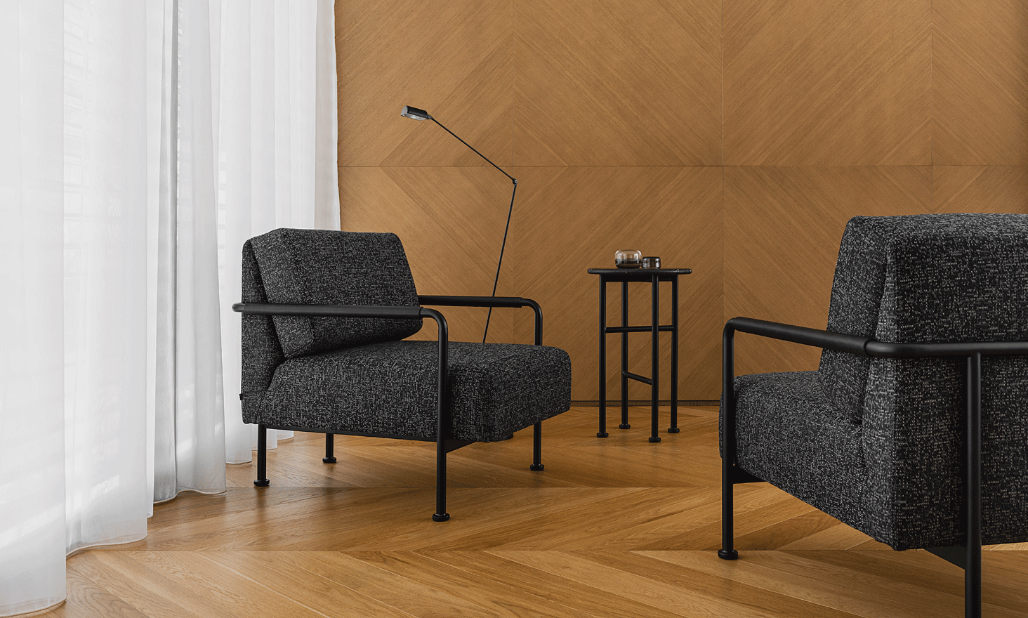 Sklejka obustronnie okleinowana okleiną naturalną dębową; Nogi - stalowe lakierowane proszkowo.