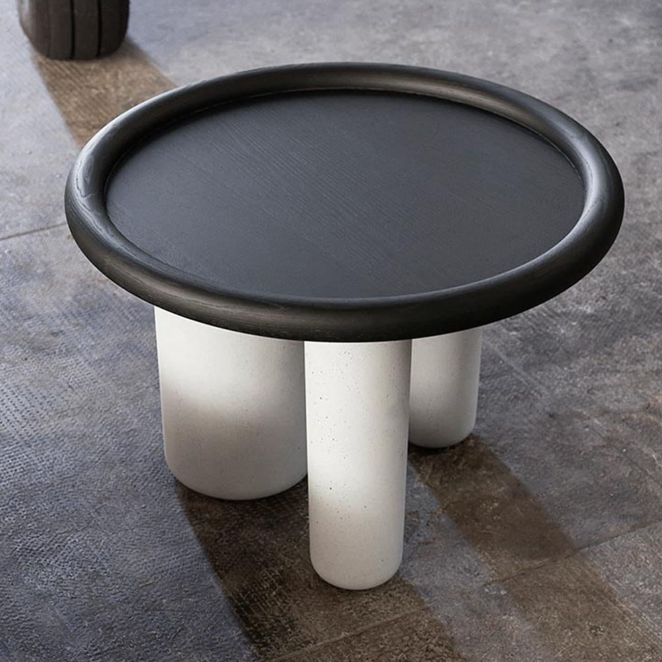 Stolik boczny PLUTO Ø60 cementowy z drewnianym blatem Tacchini