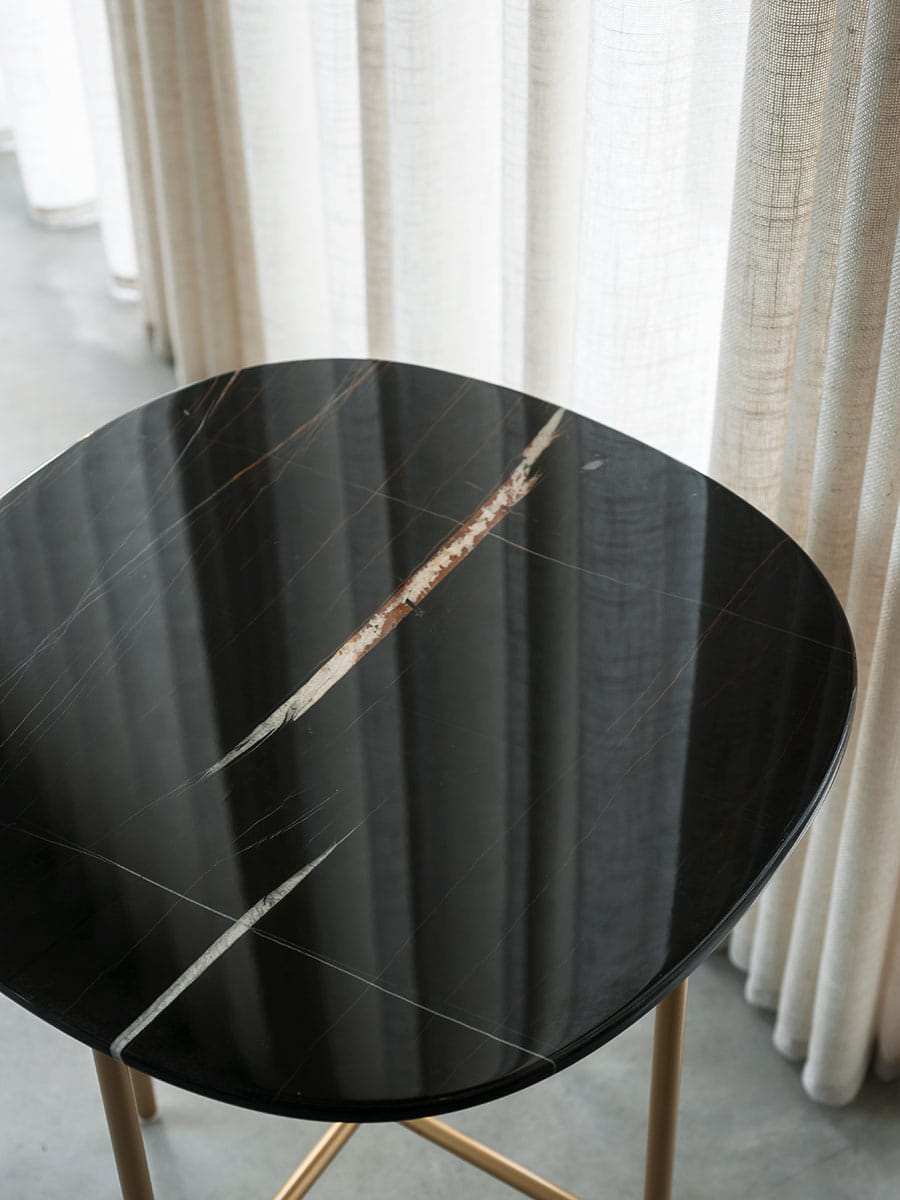 Blat: grubość blatu 12 mm wokół krawędzi i 20 mm na środku. Impregnacja marmuru przeciw plamom dostępna na zamówienie. Dla marmurowego blatu Sahara noir, płyta aluminiowa o grubości 3 mm do wzmocnienia marmurowego blatu.