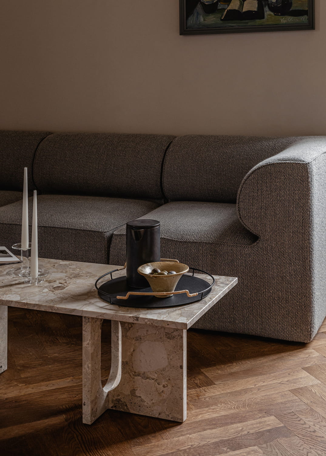 Nowoczesny i wszechstronny stół, charakteryzuje się prostą sylwetką i ciekawymi materiałami. Celebrując rzemiosło i drewno, Androgyne Lounge Table jest dostępny w wersji z naturalnego lub ciemno bejcowanego dębu lub orzecha włoskiego, a także z opcją blatu z kamienia kunis breccia, calacatta viola lub szarego marmuru galaxy. Dzięki kształtowi i funkcji stworzonej do różnych ustawień, wszechstronny, modernistyczny design umożliwia wykorzystanie go zarówno jako stolika wypoczynkowego, jak i ławki na stosy książek lub dekoracji.