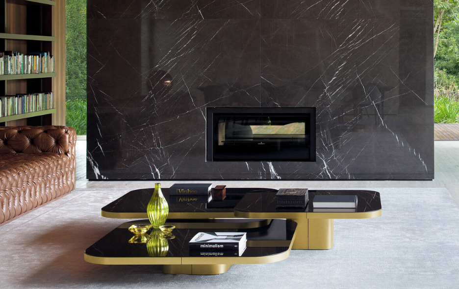 Blat może być w wersji z czarnym szkłem lub marmurem Nero Marguina, Emperador Dark lub Bianco Carrara.