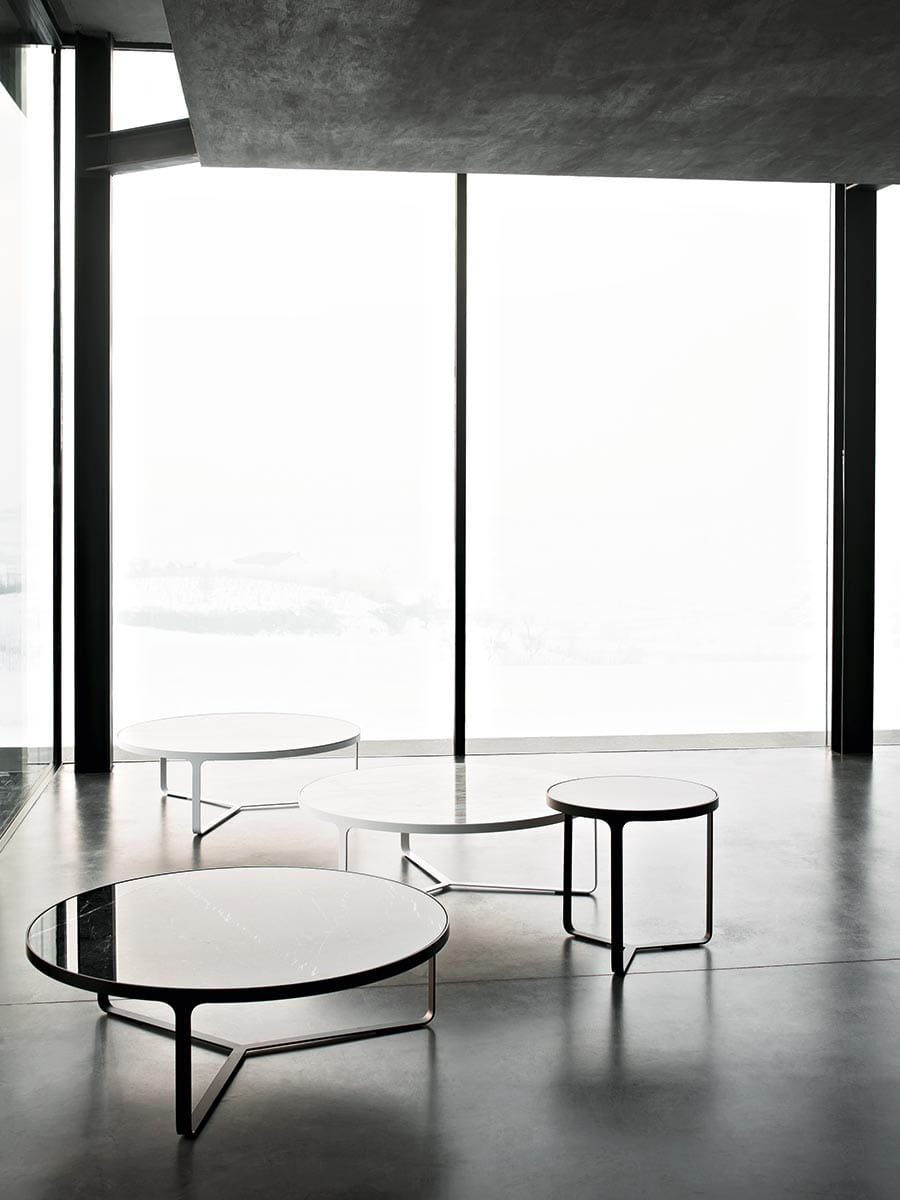 Minimalizm i elegancja to kluczowe cechy stolików kawowych Cage, z metalową podstawą, która jest jednocześnie podporą i ramą dla szlachetnego marmurowego blatu. Stoliki Cage mogą być okrągłe lub kwadratowe, wysokie lub niskie i towarzyszą i uzupełniają wszystkie sofy i fotele z kolekcji Tacchini.