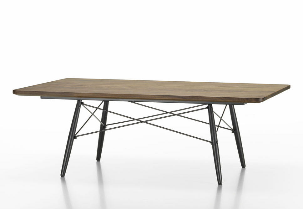 Najwyższej jakości blaty stolika kawowego Eames autorstwa Charlesa i Ray Eamesów są dostępne w wersji prostokątnej lub kwadratowej z marmuru lub litego orzecha amerykańskiego. Drewniane nogi podkreślają niewymuszoną elegancję tego wyrafinowanego stolika kawowego.