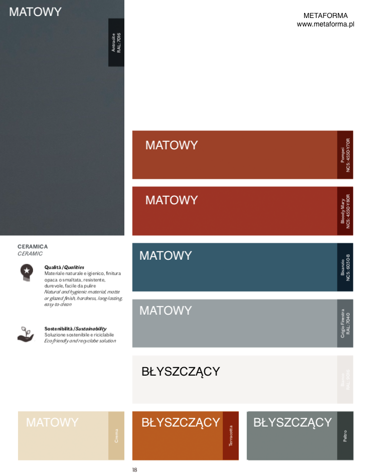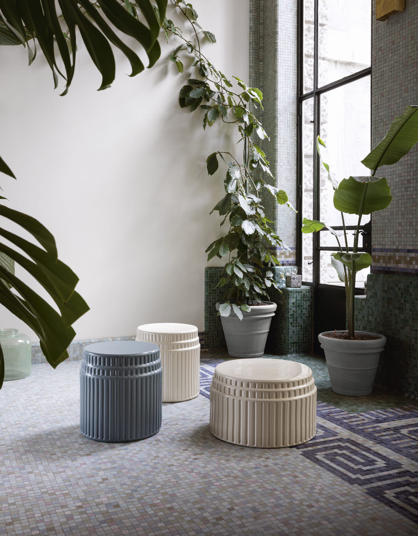 Stolik z matowej lub szkliwionej ceramiki, dostępny w kolorach wymienionych w wzorniku Campionario.