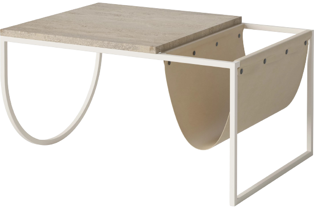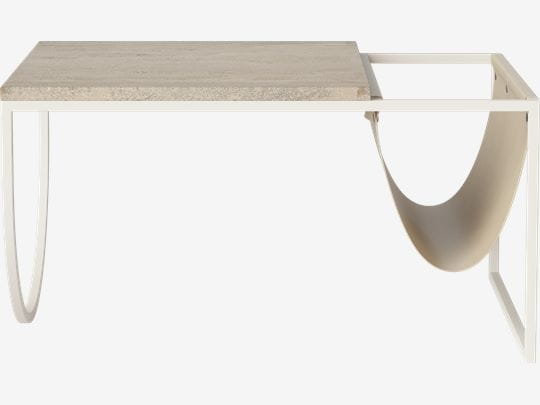 Stolik kawowy PIERO trawertyn i jasna skóra Bolia