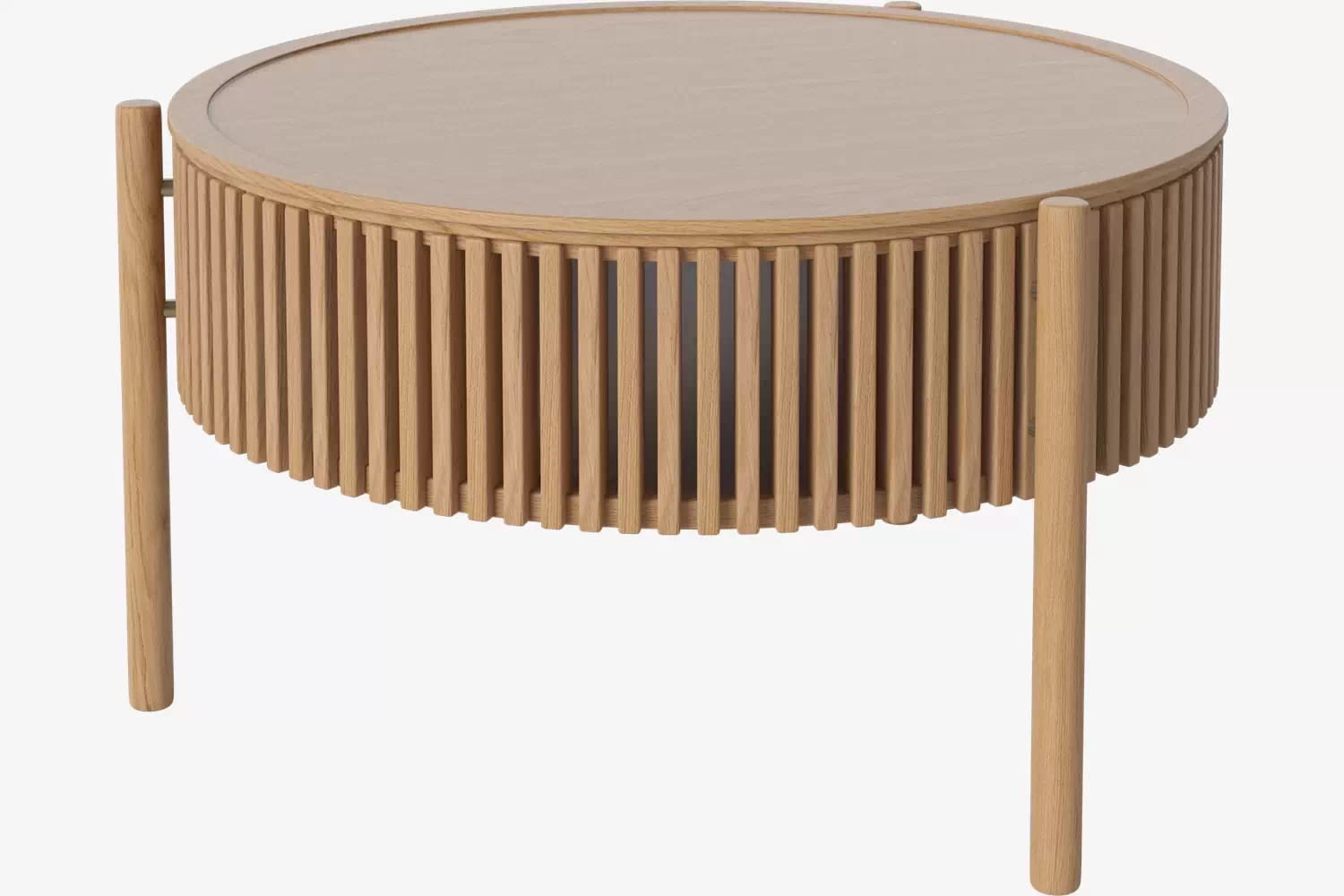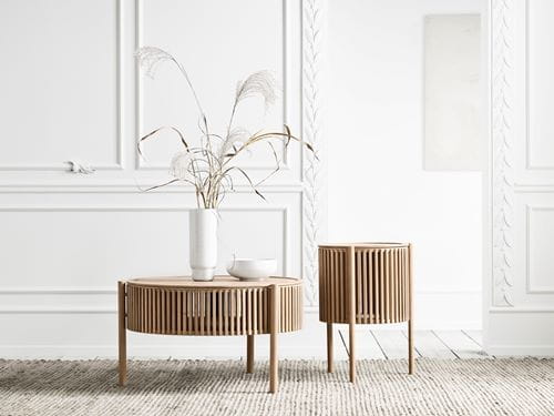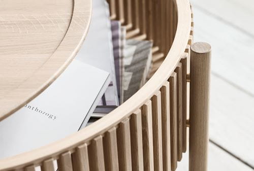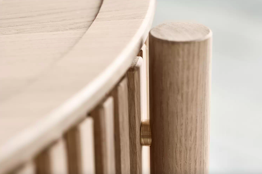 Story to elegancka seria ręcznie robionych stolików bocznych, kawowych i barowych. Każdy projekt charakteryzuje się charakterystycznym, zwiewnym frontem utworzonym przez eleganckie drewniane kolumny. Wystarczająco przezroczyste, aby wyeksponować ulubione przedmioty lub wystarczająco zakryte, aby ukryć je za figlarnym frontem. Projektantki, Anna Karnov i Clara Mahler, chciały stworzyć długotrwały projekt, który spełniałby zmieniające się potrzeby i życzenia. Podkreślona jakość rzemiosła i naturalny dąb, który z biegiem lat zmienia swój charakter i sprawia, że każdy stół jest wyjątkowy i ma swoją własną, oryginalną i piękną historię. Stoły wykonane są z drewna posiadającego certyfikat FSC, a każdy stół jest montowany za pomocą sześciu śrub, które są w kreatywny sposób ukryte przed gołym okiem.