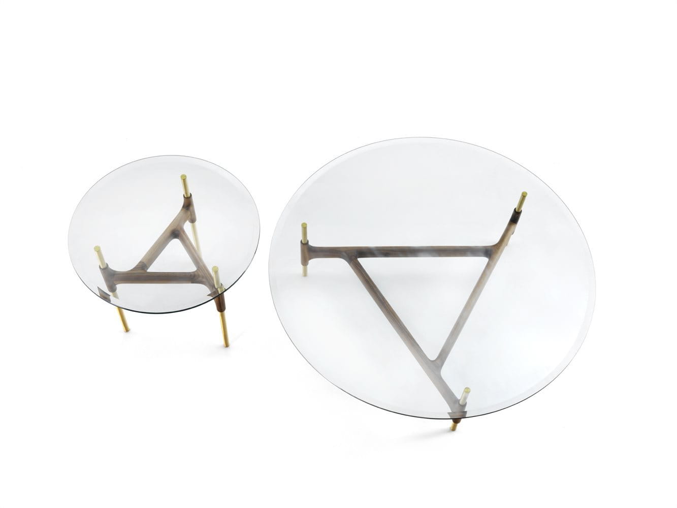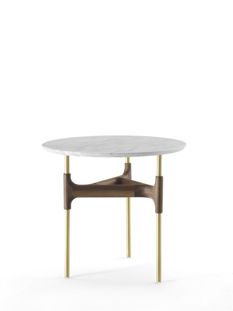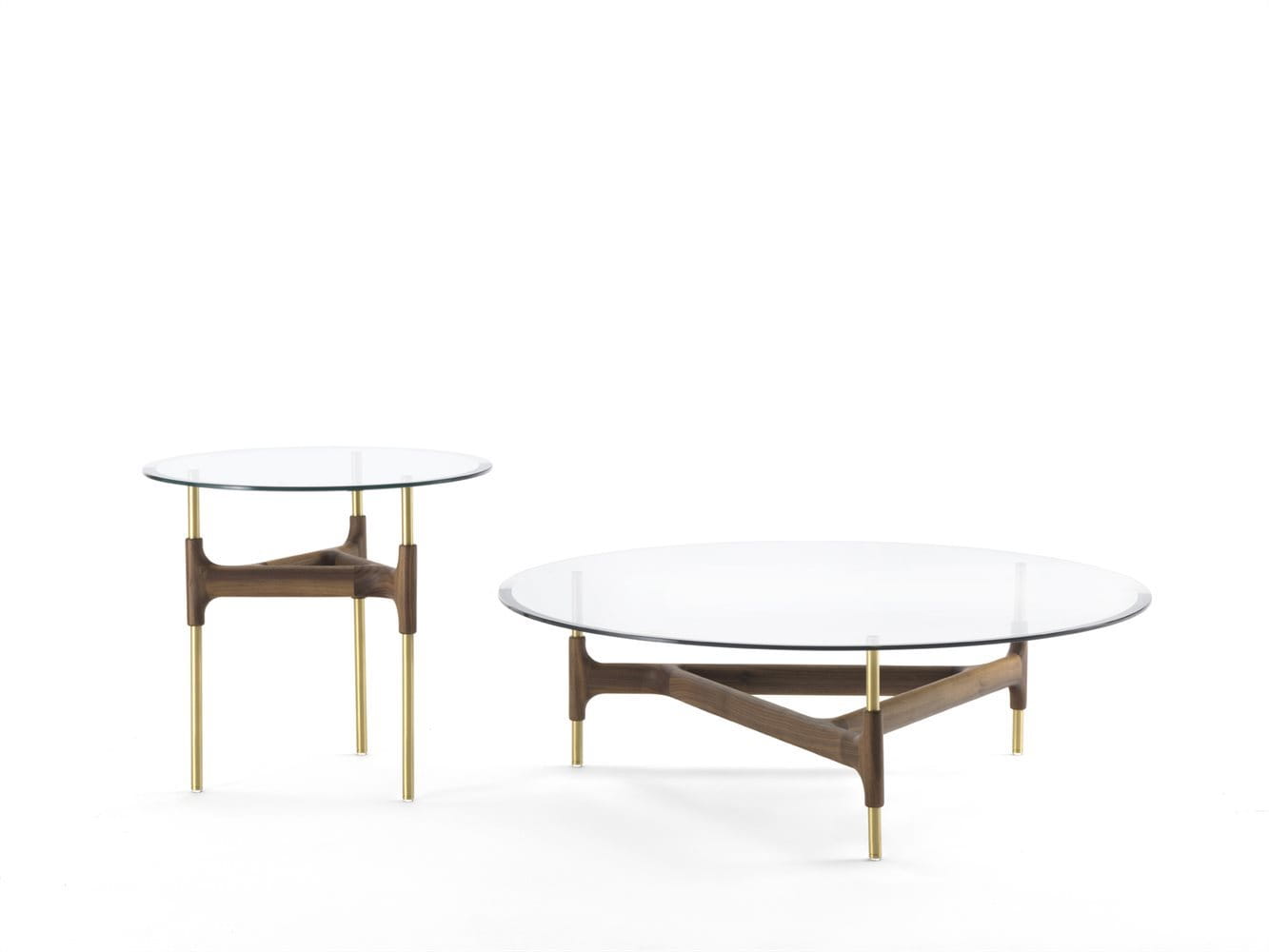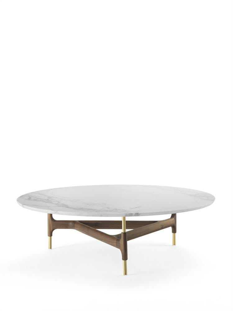 Kolekcja stolików kawowych składająca się z 2 stolików: małego i dużego dostępnych w wersji z blatem z marmuru lub szkła.