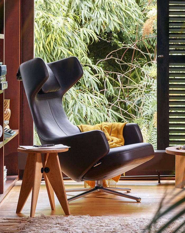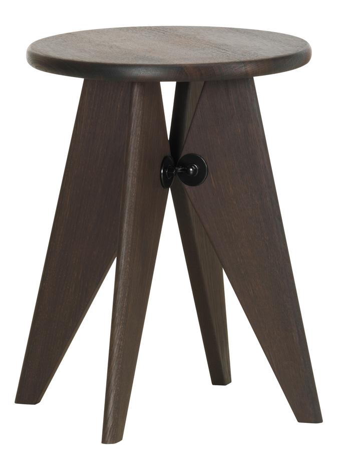 Tabouret Solvay nosi niepowtarzalny podpis Jean Prouvé, odzwierciedlając estetykę opartą na wymaganiach konstrukcyjnych.