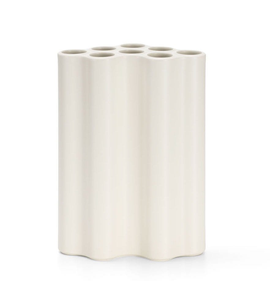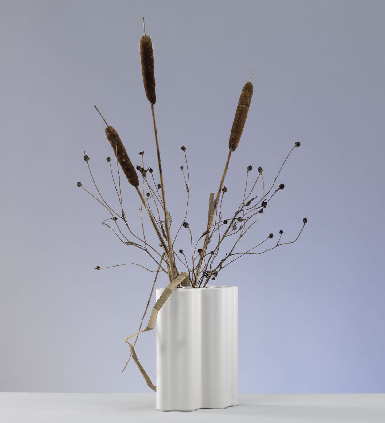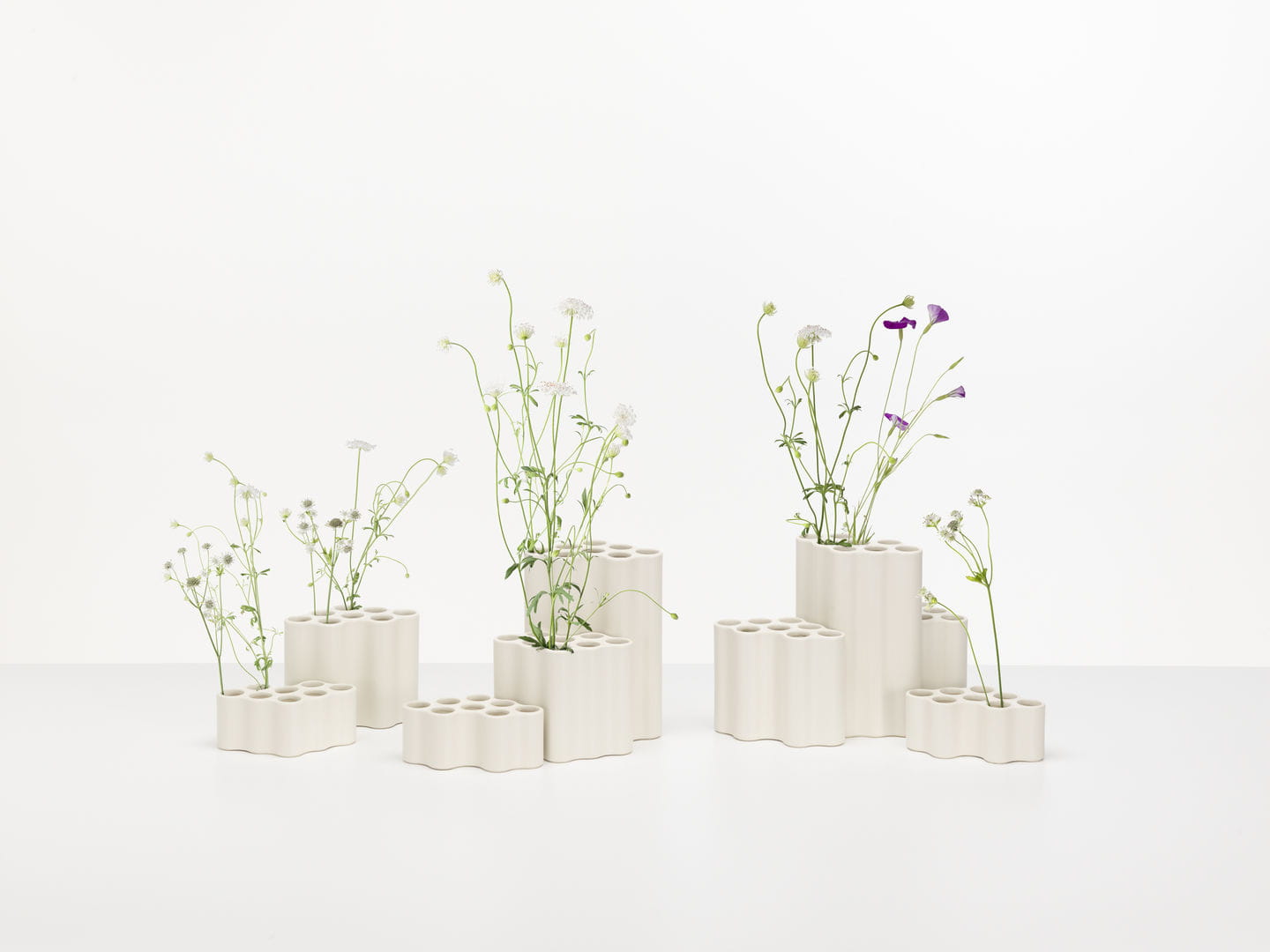 Ceramiczne wazony Nuage są misternie wykonane ręcznie, dzięki czemu powstają ledwie zauważalne różnice, które sprawiają, że każdy uroczy wazon jest obiektem unikatowym. Pofałdowane powierzchnie tworzą atrakcyjną grę światła i cienia, a pojedyncze wazony można łączyć w całe "formacje chmur".